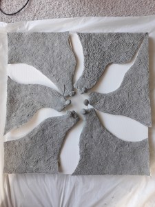Once all the pieces were dried and painted, I arranged and glued them on the already painted canvas and allowed them to dry as well.